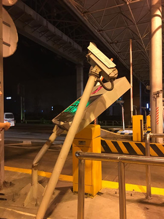 7月5日22點(diǎn)03分,機(jī)電設(shè)備維養(yǎng)中心接到臺(tái)州收費(fèi)所當(dāng)班班長小馬電話,稱該所ETC入口綜合顯示屏及抓拍攝像頭被一輛大客車撞彎,事故還導(dǎo)致出口欄桿不能正常工作,影響了出口車輛正常通行。