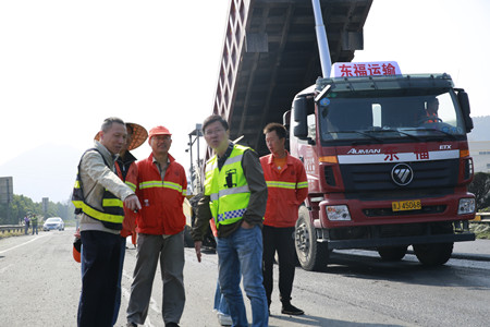 在公司路段寧向K1643+800處左右,路面銑刨作業(yè)正在緊張地進(jìn)行著,張建平看到施工人員在銑刨車上駕駛著,監(jiān)理單位工作人員在現(xiàn)場(chǎng)低頭觀察著,工程養(yǎng)護(hù)部監(jiān)管人員王劍也認(rèn)真地盯著銑刨車經(jīng)過的路面……“辛苦了!”張建平上前與大家打了聲招呼。然后向大家了解當(dāng)天的工程安排和進(jìn)度,以及正在進(jìn)行的施工作業(yè)情況,詢問了有哪些困難和問題,提出了一些施工中的注意事項(xiàng),特別強(qiáng)調(diào),要注意安全,要視質(zhì)量為生命,務(wù)必保質(zhì)保量地完成養(yǎng)護(hù)攻堅(jiān)工作。