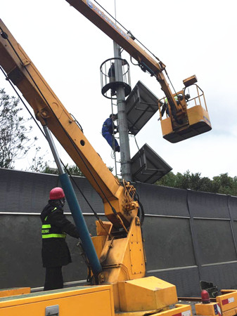 上圖為更換太陽能板現(xiàn)場 為盡快解決這一問題,中心聯(lián)系三家太陽能板供應(yīng)商,通過對性能、價格、服務(wù)等多方面比較后,最終選定杭州一家單位負責(zé)此次太陽能板供貨、拆除及安裝工作。1月24日,設(shè)備到貨,但同時也碰上了今年入冬以來最強冷空氣??扇舨患皶r更換,勢必會影響春運安全行車。 面對困難,中心隊員并未退縮,每天起早摸黑,帶領(lǐng)安裝人員親赴施工現(xiàn)場,負責(zé)監(jiān)管和預(yù)警工作。每當(dāng)路面飛駛而過的車輛帶起陣陣寒風(fēng),吹的隊員瑟瑟發(fā)抖時,施工人員都會勸說隊員回車上休息,但都被謝絕了,不僅依舊緊盯施工進度和質(zhì)量,還協(xié)助他們一起拆卸和搬運。在大家共同努力下,所有破損太陽能板在不到3天的時間里被拆卸和更換,比預(yù)定時間提前了整整一天。 更換后的新太陽能板最大輸出功率較之前提高了15%,這將大大提升太陽能板對蓄電池充電效率,保證監(jiān)控云臺有效運轉(zhuǎn),為高速的安全暢通保駕護航。 項寅曉
