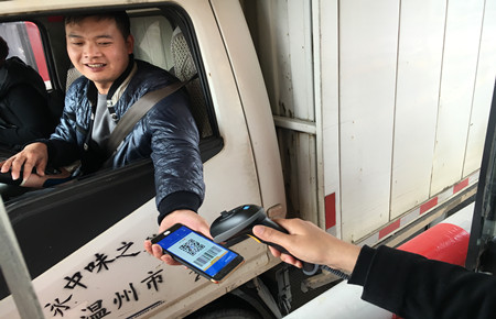 “嘀!”掃碼成功!臺州高速臺州收費所出口車道,黃師傅掏出手機打開支付寶APP,選擇首頁“付款”,手機對準安裝在收費窗口外側(cè)的掃碼設(shè)備,成功支付通行費,隨即拿到通行發(fā)票,車道欄桿自動抬桿放行。掃碼繳費出站僅用了幾秒種。這是臺州高速公路支付寶移動支付通行費第一輛車?!敖裉煺媸沁\氣,正好沒帶現(xiàn)金,沒想到高速也可以支付寶支付通行費了!”黃師傅贊嘆道,“現(xiàn)在出門就帶手機,以前有次忘帶錢包,結(jié)果到了出口才想起來,于是車子里到處找零錢。太尷尬了?!?/span>