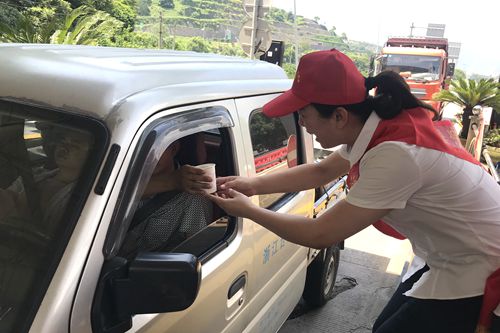 圖為志愿者為過往司機遞上消暑品 “師傅,辛苦啦!喝杯綠豆湯,解解暑氣吧!” “大熱天的,您可要多注意休息呀,千萬別疲勞駕駛,這是礦泉水和風油精,希望能幫您緩解疲勞?!?/span> 活動當天,該所在車道安全島內(nèi)搭起臨時“便民服務臺”,為司乘人員免費提供礦泉水、綠豆湯等解暑佳品。同時還針對夏季出行容易出現(xiàn)的中暑、暈車現(xiàn)象,備足風油精、人丹等解暑降溫藥品。