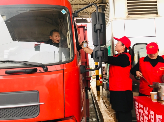 圖為送溫暖活動(dòng)現(xiàn)場(chǎng) 活動(dòng)當(dāng)天,雖然氣溫較低,但在臨海南收費(fèi)所出口處,身著紅色馬甲的志愿者們頂著嚴(yán)寒,依然熱情地為過(guò)往司乘人員遞上一杯杯滾燙的姜茶、紅棗茶,并向他們提供問(wèn)詢、指路、飲水和提示路況信息等便捷服務(wù)。除了設(shè)置志愿者便民服務(wù)臺(tái),臨海南收費(fèi)所還為過(guò)往駕駛員和出行旅客臨時(shí)增設(shè)休息室,提供道路溫馨提示服務(wù),同時(shí)還在車道配備了飲水機(jī)、藥品、修車工具等免費(fèi)便民物品。