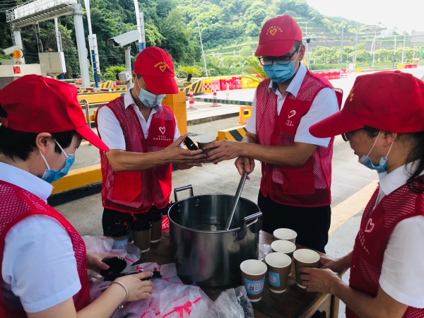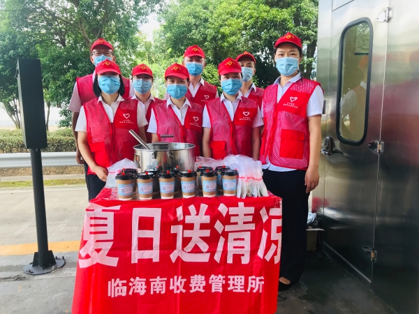 活動現(xiàn)場,志愿者們身穿耀眼的紅馬甲,面帶微笑,顯得格外耀眼動人。雖然大家的衣服早已被汗水浸透,但熱情周到的服務(wù),獲得了過往司乘的紛紛點(diǎn)贊。臨海南收費(fèi)所通過開展“夏日送清涼”活動,不僅送去了高速公路工作者的愛心,同時也拉近了與司乘人員之間的溝通交流,贏得了過往司乘人員的好評,塑造了良好的窗口形象。 除了為司乘送“清涼”,該所也真正做到把清涼送到收費(fèi)一線,把關(guān)懷送到員工心坎,保障員工的健康權(quán)益,為員工提供了清涼油、克痢痧、午時茶、藿香正氣水等防暑降溫物品。食堂每天精心熬制不重樣甜湯,大家喝到提前冷涼的甜湯紛紛表示,三伏天里,雖然感到悶熱難受,但在休息的時候能喝上一碗涼涼的甜湯,真幸福。并保證一定會克服酷暑高溫,堅(jiān)守崗位,盡職盡責(zé),積極投身于收費(fèi)、交通疏導(dǎo)工作中。