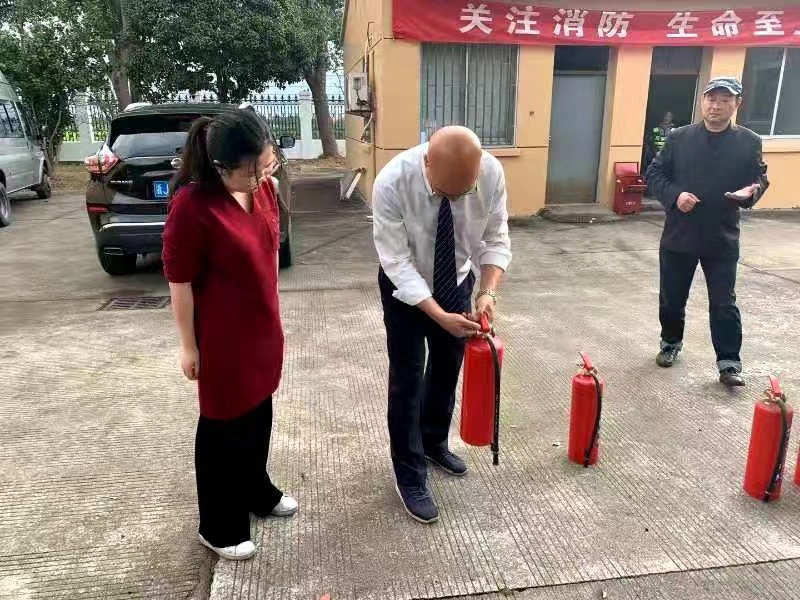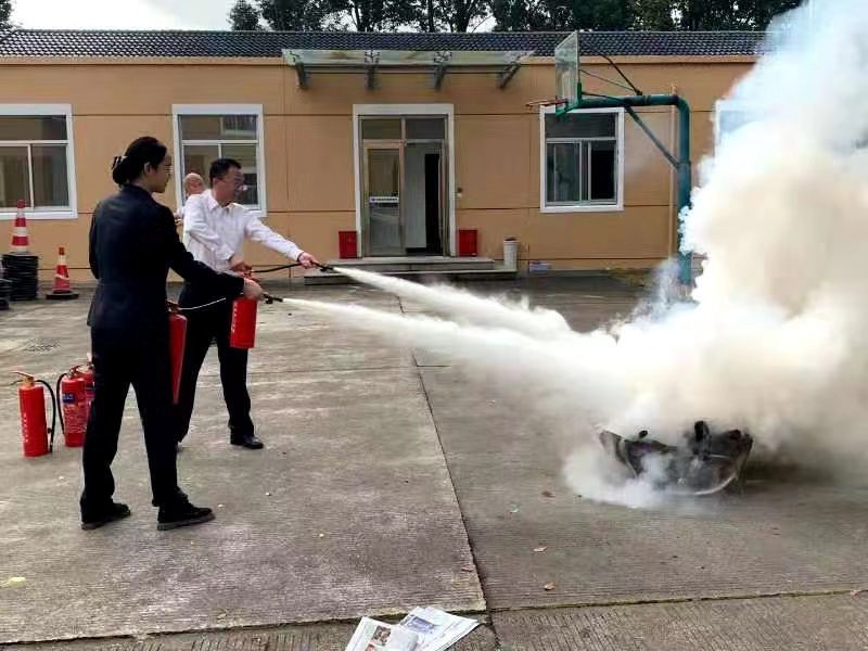 圖為滅火器演練現(xiàn)場(chǎng) 演練現(xiàn)場(chǎng),老員工們按照“一看二搖三拔四噴”的使用方法,熟練地檢查了滅火器有無(wú)過(guò)期,隨后搖動(dòng)瓶身、拔出插銷,對(duì)著火源根部噴了下去,熊熊火勢(shì)瞬間被熄滅。