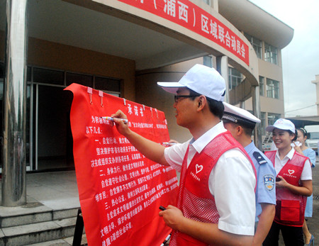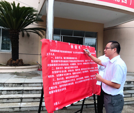 圖為公司副總經(jīng)理章海峰在承諾書上簽名 章海峰要求大家充分認識創(chuàng)建全國文明城市的重要性,立足崗位,樹窗口形象,展行業(yè)新風,用自己的實際行動支持創(chuàng)建工作。此次創(chuàng)建工作,時間緊、任務(wù)重,需要全體人員迅速行動起來,從我做起,從細節(jié)做起,從點滴做起,逐層壓實責任,確保萬無一失。文明城市創(chuàng)建工作不僅僅是政府的事,更是全體市民的事,也直接體現(xiàn)了一個城市的幸福指數(shù),大家要以“一流的城市環(huán)境、一流的公共秩序,一流的服務(wù)水平、一流的精神面貌”迎接測評。