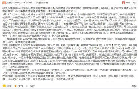 整個收費過程,未曾出現投訴人所說的亂收費和態(tài)度惡劣現象,黃智超始終以熱情的微笑面對司機,陳幸也是應對問詰,保持禮貌,堅持原則,不急不躁地做好收費政策解釋工作。 目前,該事件在集團各部門的合力下,已妥善處理完畢。對此失實消息,辦公室也及時予以了有力回復,在客觀澄清事情原委的基礎上,依法依規(guī)、有理有據地向社會公眾進一步宣傳收費政策,釋疑解惑。該貼在網絡論壇點率率已超過3千,網民評論都是一片倒地點贊支持高速集團的政策解釋。