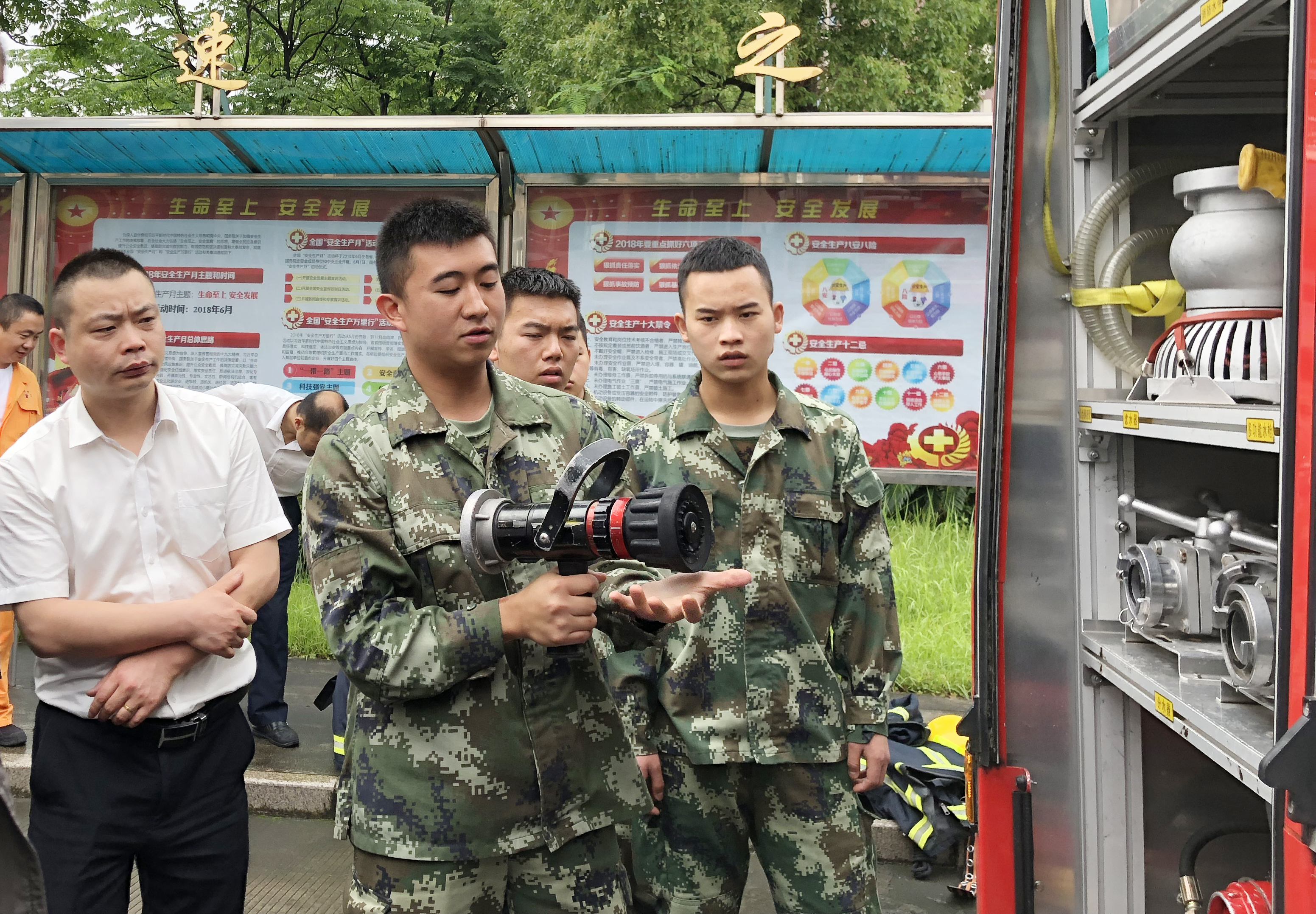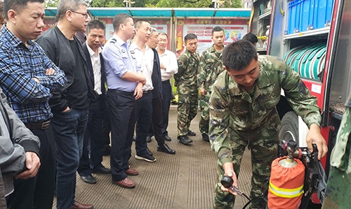 圖為培訓(xùn)現(xiàn)場 活動現(xiàn)場,黃巖消防大隊官兵向參加活動的員工展示消防車上的消防裝備實物,講解裝備使用功能以及消防車基本構(gòu)造,耐心地解答員工提出的問題,并當(dāng)場進行專業(yè)的消防水帶連接滅火演示。之后,臺州收費所員工開展消防水帶連接滅火演練,獲得黃巖消防大隊官兵的肯定,同時針對演練中存在的問題及不足給出專業(yè)性的指導(dǎo)意見。