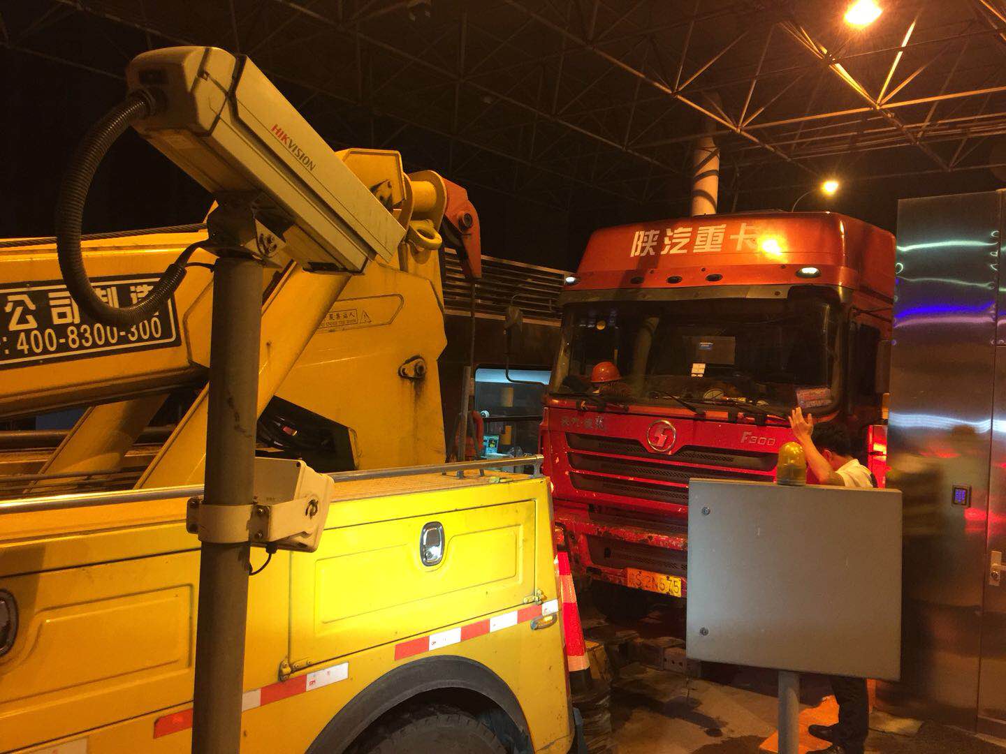 超載有風(fēng)險(xiǎn) 安全記心中 7月15晚21點(diǎn)40分左右,一輛皖S牌照的大貨車,在臺(tái)州收費(fèi)所出口6號(hào)車道繳費(fèi)后欲離開時(shí)發(fā)現(xiàn)車子熄火無(wú)法啟動(dòng),駕駛員數(shù)遍嘗試均不成功。此時(shí)當(dāng)班班長(zhǎng)郭斯泓細(xì)心地發(fā)現(xiàn)車子底下在漏油,駕駛員也確認(rèn)開不了,于是馬上聯(lián)系監(jiān)控中心需要拖車,并臨時(shí)關(guān)閉車道,引導(dǎo)排隊(duì)車輛至其他車道。