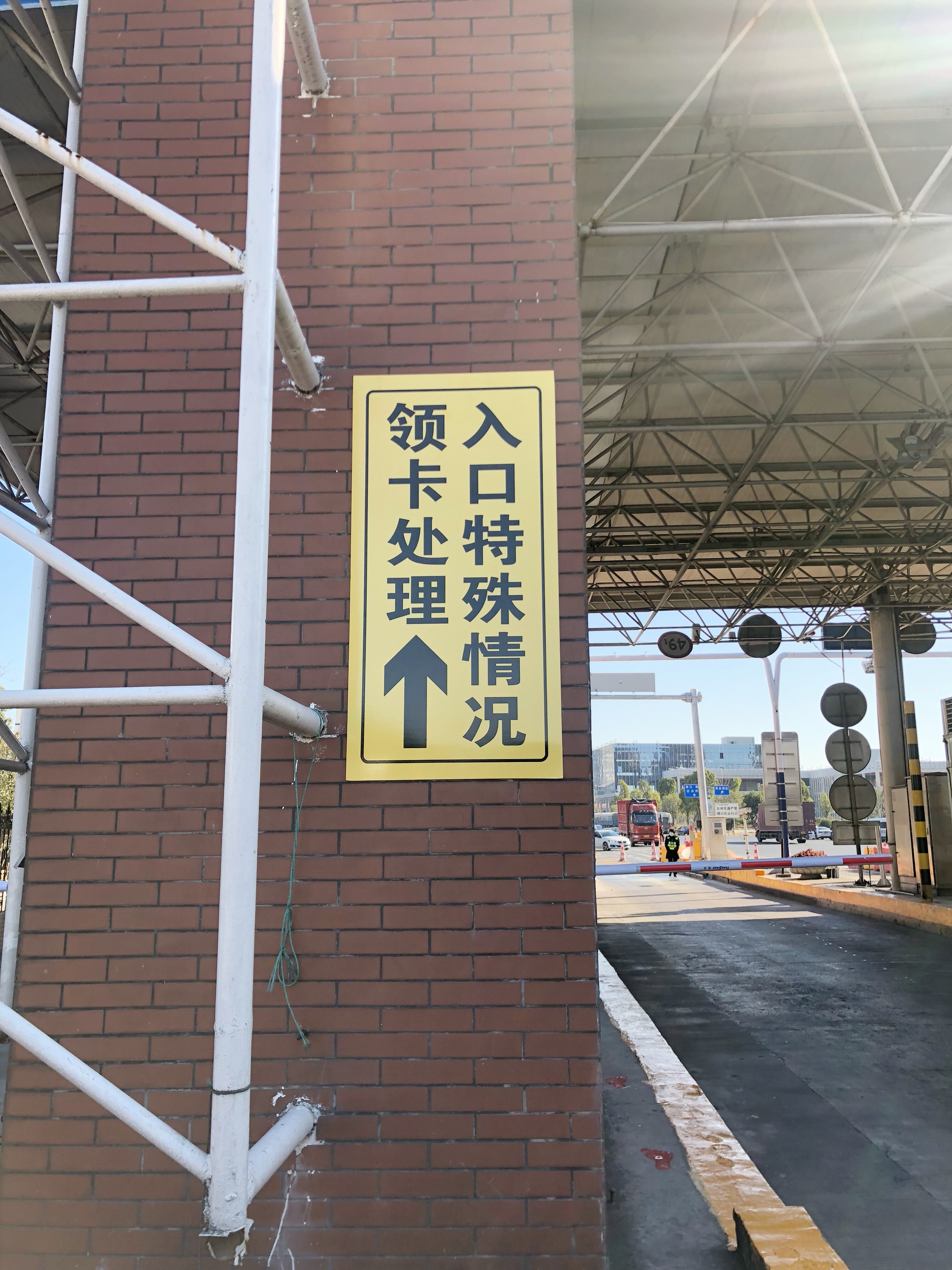 (圖為臺(tái)州收費(fèi)所入口領(lǐng)卡指示牌)