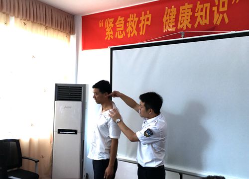 圖為授課現(xiàn)場(chǎng) 授課老師向水平為大家講述了現(xiàn)場(chǎng)心肺復(fù)蘇術(shù):判斷呼吸→高聲呼救→擺體位→打開(kāi)氣道→人工呼吸及如何進(jìn)行按壓與吹氣,隨后他授以簡(jiǎn)單的醫(yī)學(xué)理論知識(shí),對(duì)高血壓、心臟病、糖尿病等疾病的預(yù)防作了普及。當(dāng)談及上班族普遍面臨的不樂(lè)觀的嚴(yán)峻現(xiàn)實(shí):受肩周炎、頸椎病、腰椎間盤(pán)突出等職業(yè)病困擾時(shí),向老師以現(xiàn)場(chǎng)演示的方式教大家?guī)渍袀鹘y(tǒng)的中醫(yī)方法——穴位按摩,鼓勵(lì)大家自己動(dòng)手,通過(guò)按摩這種最直接的方法,緩解不適。