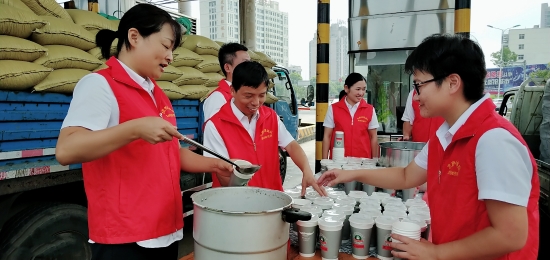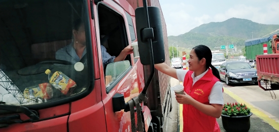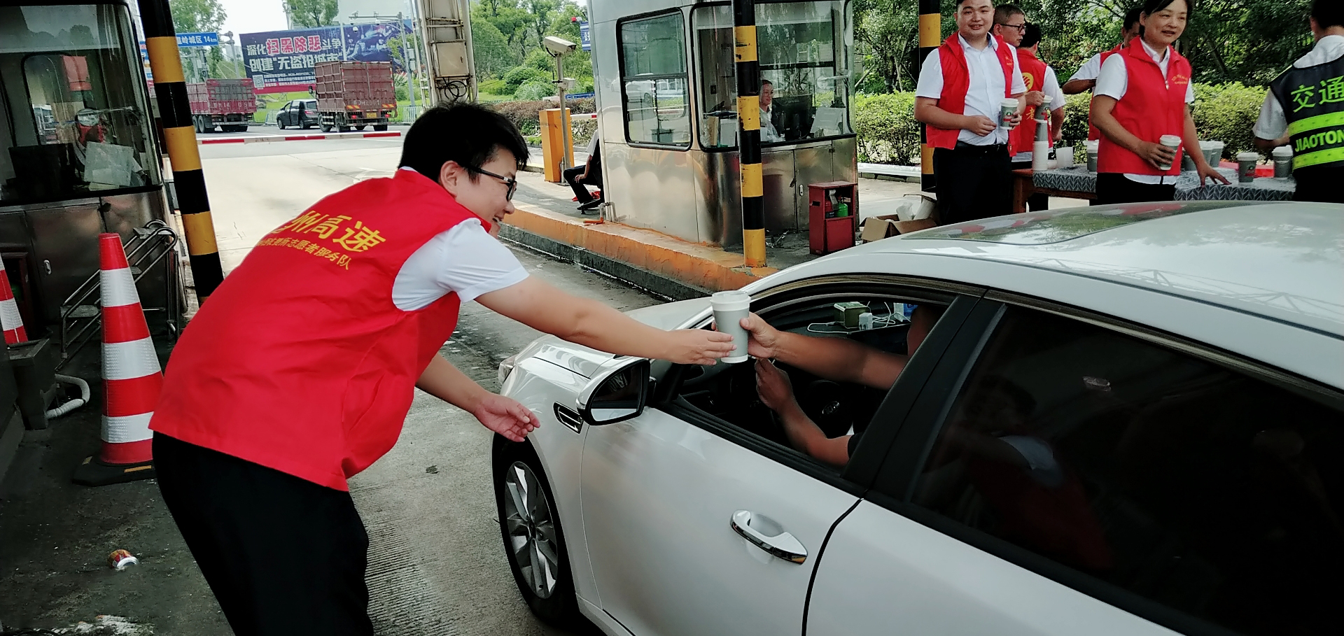 圖為送清涼活動現(xiàn)場 “師傅,你好,喝一碗冰綠豆湯解解暑吧。” 溫嶺西收費所、大溪嶺隧道所黨員帶頭,團(tuán)員響應(yīng),大家主動放棄休息時間,組成志愿服務(wù)隊,頂著高溫在高速出口處為過往司乘免費提供綠豆湯、紅棗湯等飲品,同時還備足藿香正氣水、風(fēng)油精等解暑藥品,讓廣大司乘在炎炎夏日感受到一絲清涼。當(dāng)司乘人員從志愿者手中接過一杯杯綠豆湯時,志愿者還不忘提醒司乘高溫酷暑天氣注意行車安全。面對“春風(fēng)”般微笑的志愿者,喝著綠豆湯的司乘人員都露出了開心的笑容,紛紛豎起大拇指感謝志愿者們的貼心服務(wù)。