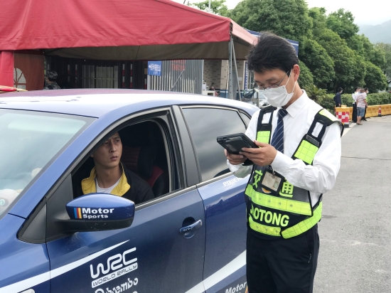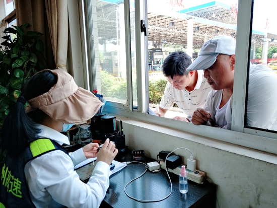 圖為收費(fèi)站人員幫過(guò)往司乘激活ETC設(shè)備