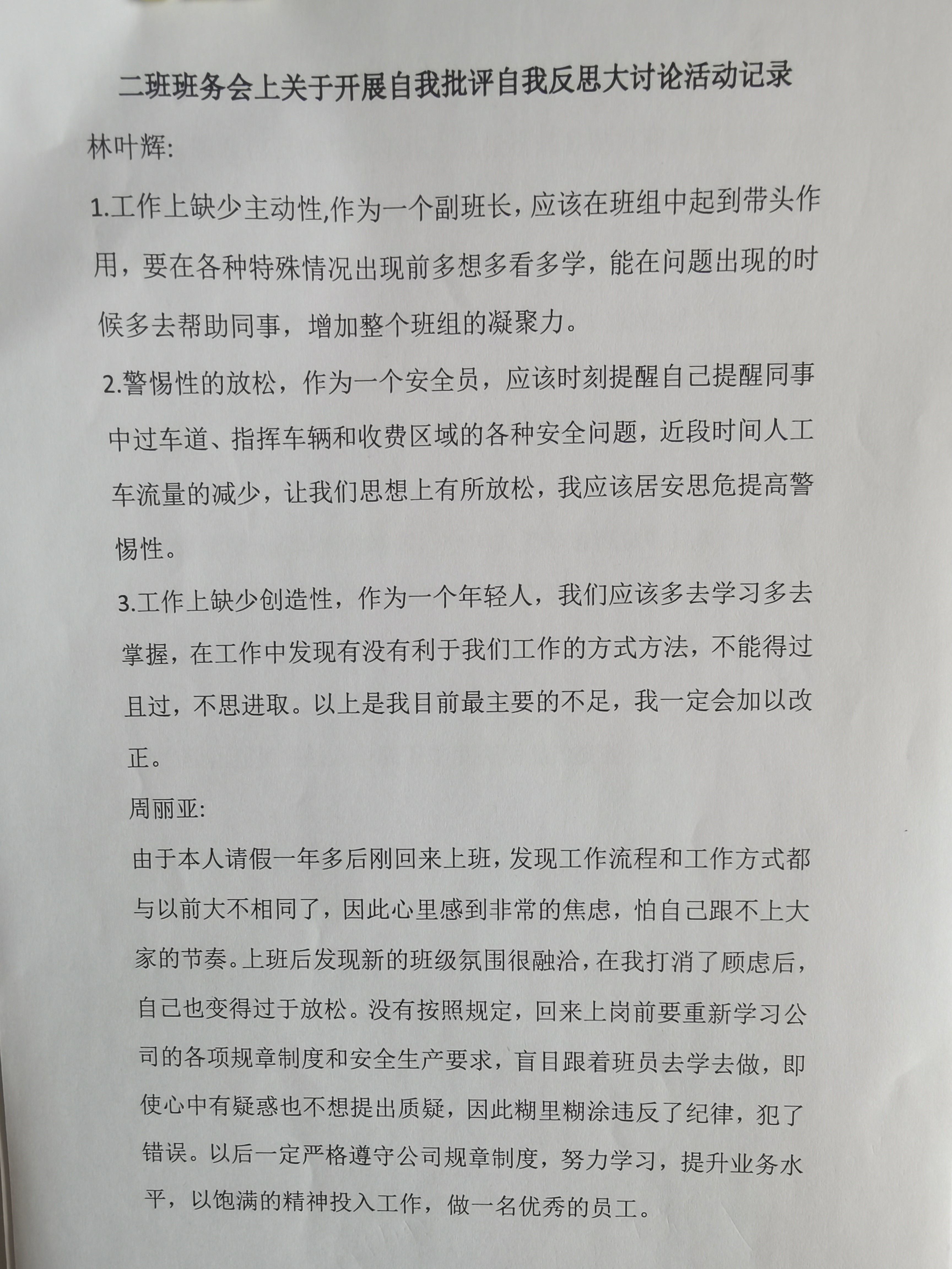 近日,溫嶺西收費(fèi)所以班組為單位,組織員工開(kāi)展自我批評(píng)、自我反思大討論活動(dòng)。