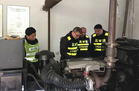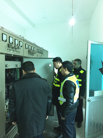 圖為檢查員在檢查配電房用電設備 檢查人員本著“防范在先、警惕在前”的原則,重點檢查了供配電房的供電設備運行狀況和消防設施。在供配電房,大家對環(huán)境衛(wèi)生、發(fā)電機組的機油油位、電柴油儲備量、水箱水位等逐一進行檢查,并當場啟動發(fā)電機組,查看是否能夠有效運行,并仔細檢查了消防設施生產日期、日常巡查記錄,消防水池儲存水量是否充足等,確保能夠正常使用。