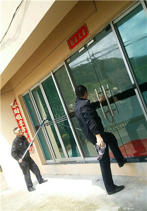 圖為執(zhí)勤隊員打掃設(shè)施設(shè)備