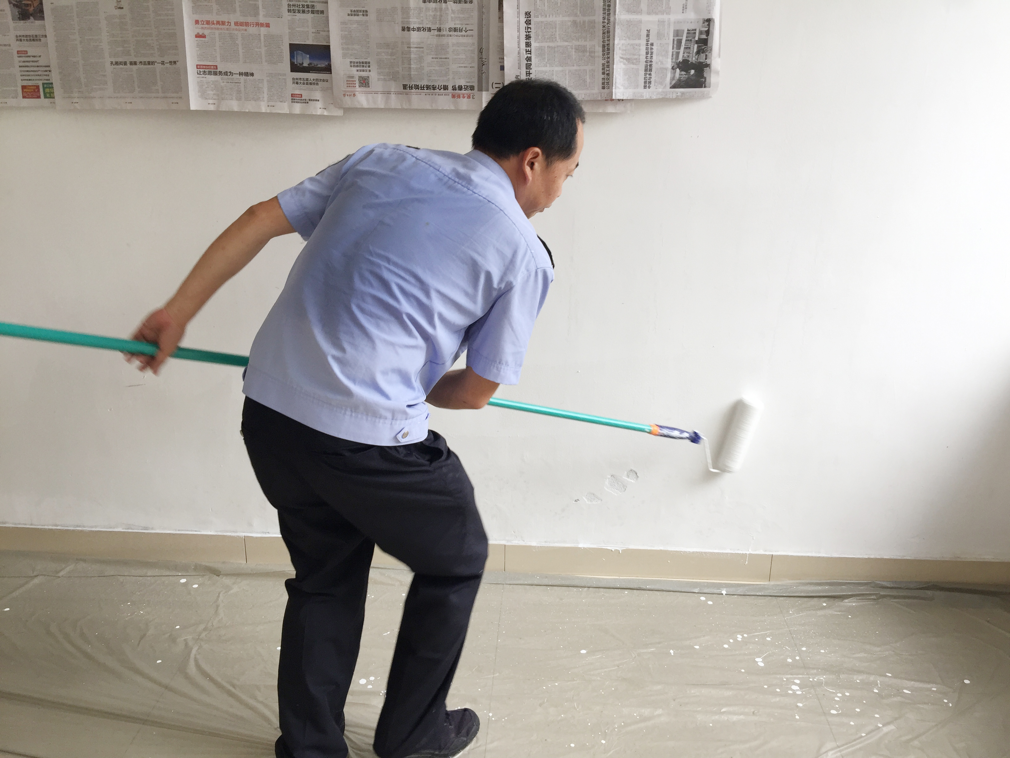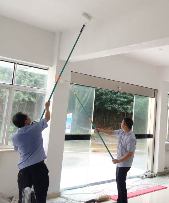 圖為“粉刷匠”粉刷現(xiàn)場(chǎng) 現(xiàn)場(chǎng),工具備齊后,大家捋起袖子開始動(dòng)工。家里正在裝修的林通,有著豐富的粉刷經(jīng)驗(yàn),指導(dǎo)大家如何將墻體粉刷得平整又美觀。分工明確后,有的拿起粉刷棒,有的攪拌涂料,有的鋪墊報(bào)紙及塑料紙,有的清理刷墻后殘留在地面的垃圾。整個(gè)勞動(dòng)過程中,各個(gè)動(dòng)作麻利,干勁十足。粉刷是個(gè)技術(shù)活,更是個(gè)力氣活,只見浸滿涂料的刷子在墻上揮舞著,個(gè)個(gè)汗如雨下,卻都顧不得休息,在大家的齊心協(xié)力下,原本一片灰不溜湫的墻壁變得雪白光潔。 這次義務(wù)勞動(dòng),不僅美化了站所環(huán)境,營造出廉潔的工作氛圍,增強(qiáng)了員工的凝聚力和向心力,更增加了全體員工對(duì)公司的一份熱愛。 林玲