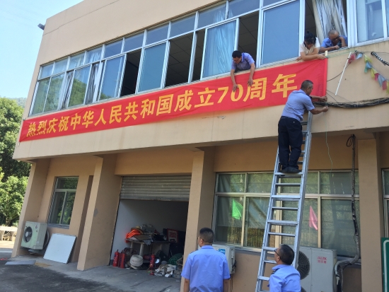 圖為插好的彩旗現(xiàn)場 連日來,在所負責人的帶領下,工作人員分工明確、團結協(xié)作,安裝旗桿、插彩旗、掛橫幅……整個布置工作有條不紊地進行。經過幾天的“梳妝打扮”,管理所入口兩側綠化帶上插滿了靚麗鮮艷的各色彩旗,辦公樓門口懸掛了大紅燈籠,外墻上懸掛著“熱烈慶祝中華人民共和國成立70周年”“歡度國慶”橫幅。在嶄新的國旗、紅色橫幅、大紅燈籠等一系列喜慶紅色氛圍的襯托下,管理所處處洋溢著歡樂的節(jié)日氣氛,全體員工也滿懷喜悅的心情,為迎接祖國70周年華誕的到來全力做好各項工作。 通過節(jié)日氛圍的營造,全體員工切身感受到祖國的偉大富強,增強民族自豪感,激發(fā)出廣大司乘人員不忘初心、牢記使命的愛國主義熱情。 林玲