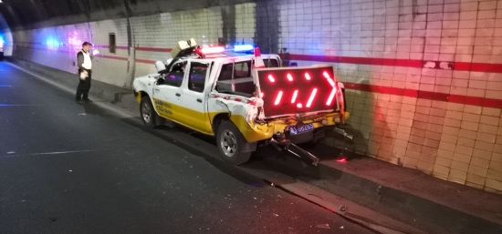 此次事故造成三車追尾,兩名執(zhí)勤隊(duì)員輕微受傷,雖然巡邏車損失慘重,但是因?yàn)?/span>執(zhí)勤隊(duì)員高度的工作責(zé)任心和對險(xiǎn)情的正確判斷處置,才未造成任何司乘人員的傷亡,也未影響到隧道正常通行。