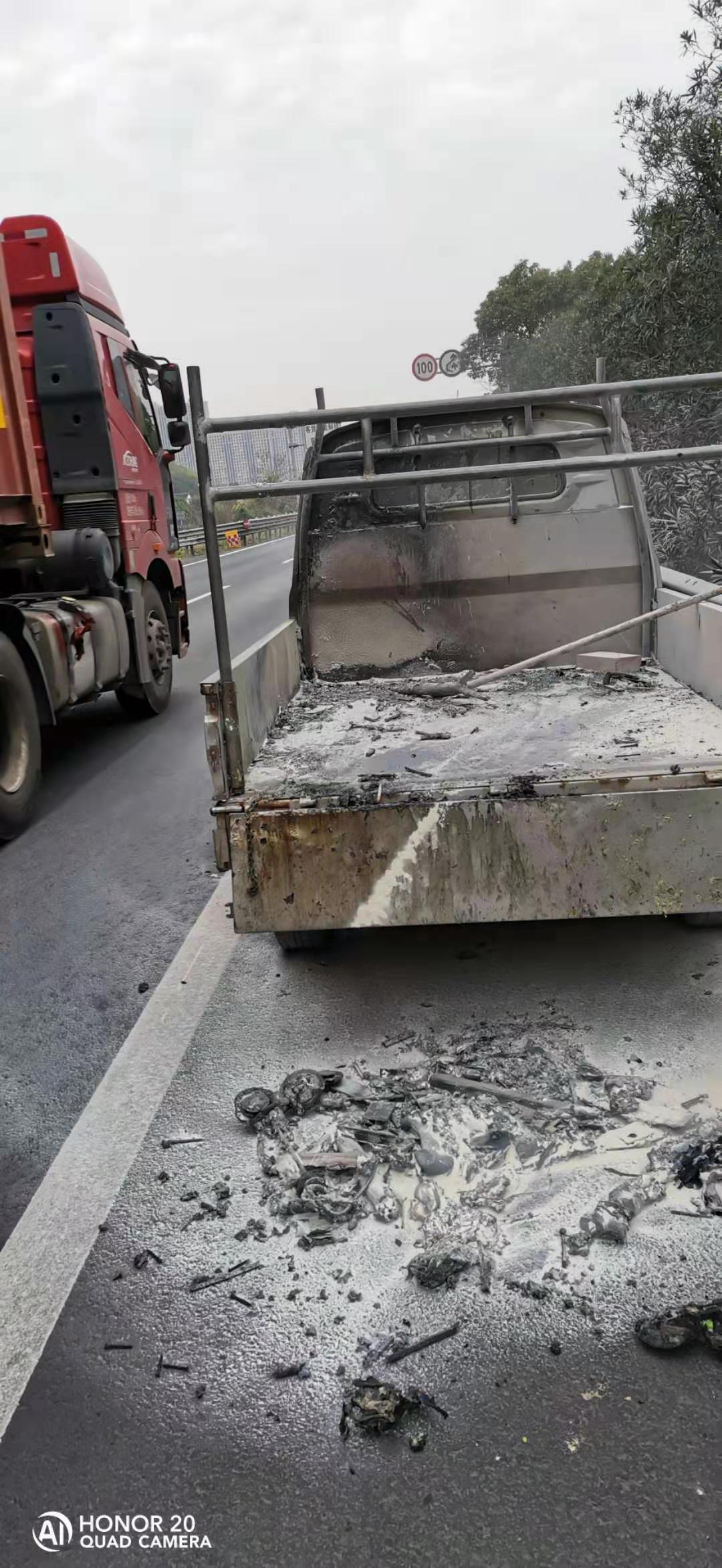 3月10日清晨7點(diǎn)46分,一輛五菱小貨車(chē)裝載物莫名起火,驟停在黃土嶺隧道溫向出洞口100米左右的硬路肩,情況十分危急。