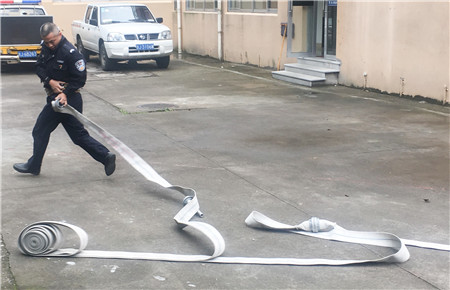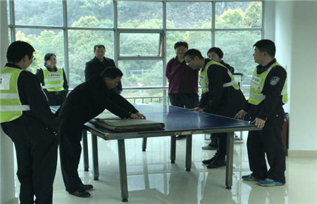 圖為裁判員認真打分 黃土嶺隧道所則組織開展了消防水帶連接使用鋪設訓練。 此次訓練以計時比賽的形式進行,執(zhí)勤隊員分組展開模擬演練,每組兩次機會,取平均分記入考核。參練人員個個激情高漲,積極投入,演習場面熱鬧非凡。每組隊員在第一輪比賽后都抓緊互相探討動作要領和水帶掐口的連接方法等,確保第二局能夠更準確、更迅速地完成連接。