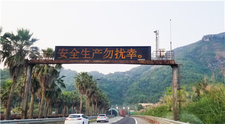 圖為情報板滾動播放安全標語 會議要求在隧道管理所醒目位置懸掛了安全條幅,情報板滾動播放安全標語,提示過往的司機朋友安全出行。同時在隧道所管理上増設(shè)安全員崗位,要求安全員嚴格遵循崗位職責,并做好日常巡查記錄表。執(zhí)勤隊長上崗要帶紅章,既能體現(xiàn)安全員的責任感,又能讓員工看到起警示作用,讓大家時刻拉緊安全這根弦。會后,工作人員按照會議部署立即行動落實。