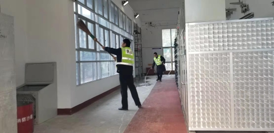 圖為設(shè)備設(shè)施檢查 當(dāng)天,該所開(kāi)始春運(yùn)專(zhuān)項(xiàng)安全生產(chǎn)大檢查,要求春運(yùn)期間要加強(qiáng)安全管理和責(zé)任,強(qiáng)化監(jiān)督檢查,抓好安全預(yù)防。10日,該所又做了一次全面的安全檢查和隱患排查,對(duì)隧道兩邊的高邊坡、豎井、高位水池、配電房、隧道內(nèi)外的各個(gè)消防設(shè)施等進(jìn)行重點(diǎn)檢查,及時(shí)處理發(fā)現(xiàn)的問(wèn)題,并做好相應(yīng)檢修工作。12日,對(duì)隧道南廣場(chǎng)的高桿燈進(jìn)行改造。14日,管理所進(jìn)行了全面的衛(wèi)生大打除,操場(chǎng)、辦公室、食堂、寢室、衛(wèi)生間的各個(gè)角落,逐一進(jìn)行清理,干凈整潔迎接新年。