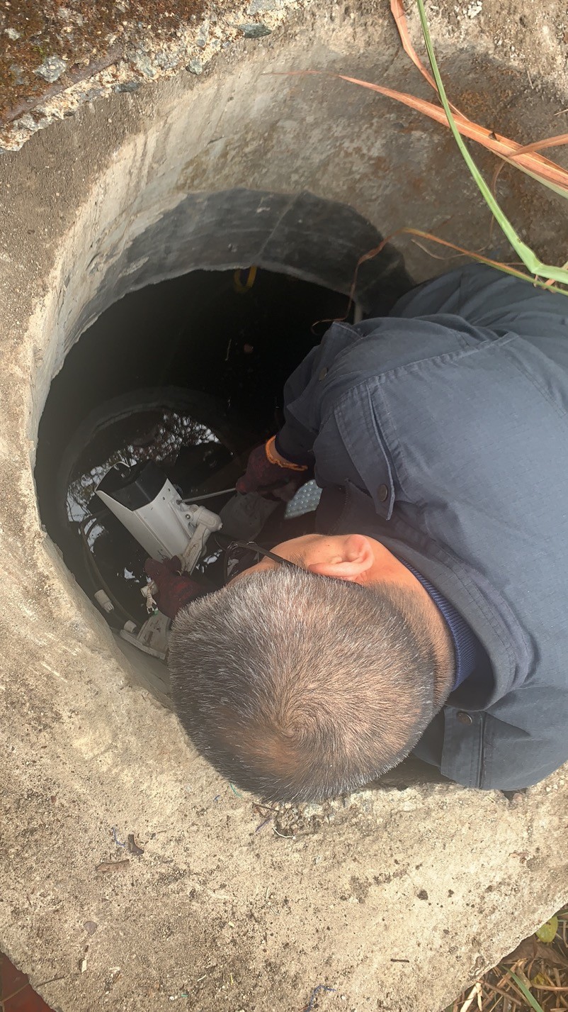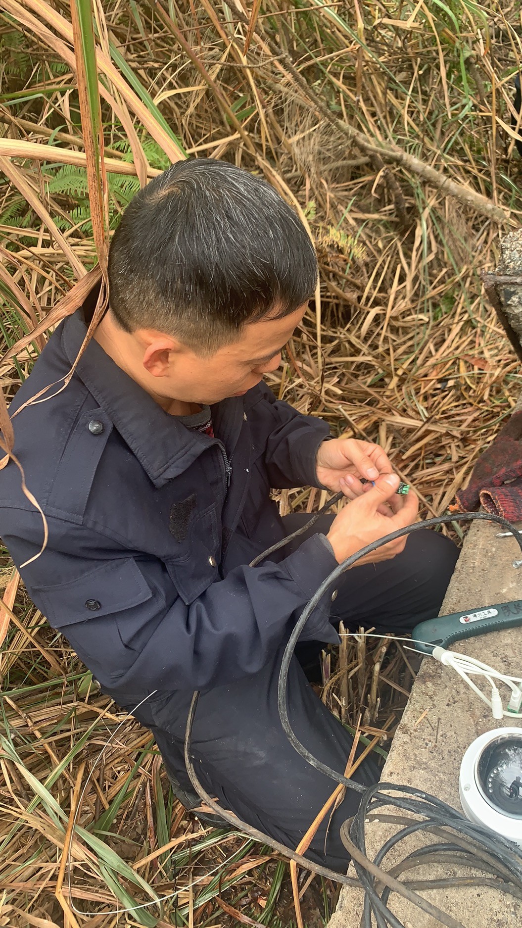 大溪嶺南高位水池地點(diǎn)在溫州地界,山體較高,攀行需要近一個小時,金所得知情況后,立即帶著執(zhí)勤隊(duì)上山到高位水池檢查,他們背著工具箱,戴著手套、拿著柴刀,經(jīng)過一個小時的披荊斬棘來到南高位水池的井口,金所爬到井里進(jìn)行檢查,發(fā)現(xiàn)光纜和電線都被老鼠咬斷了,才導(dǎo)致圖像不能工作,當(dāng)場把電線接了回去,并回所準(zhǔn)備其他材料,明日再次登山修理。