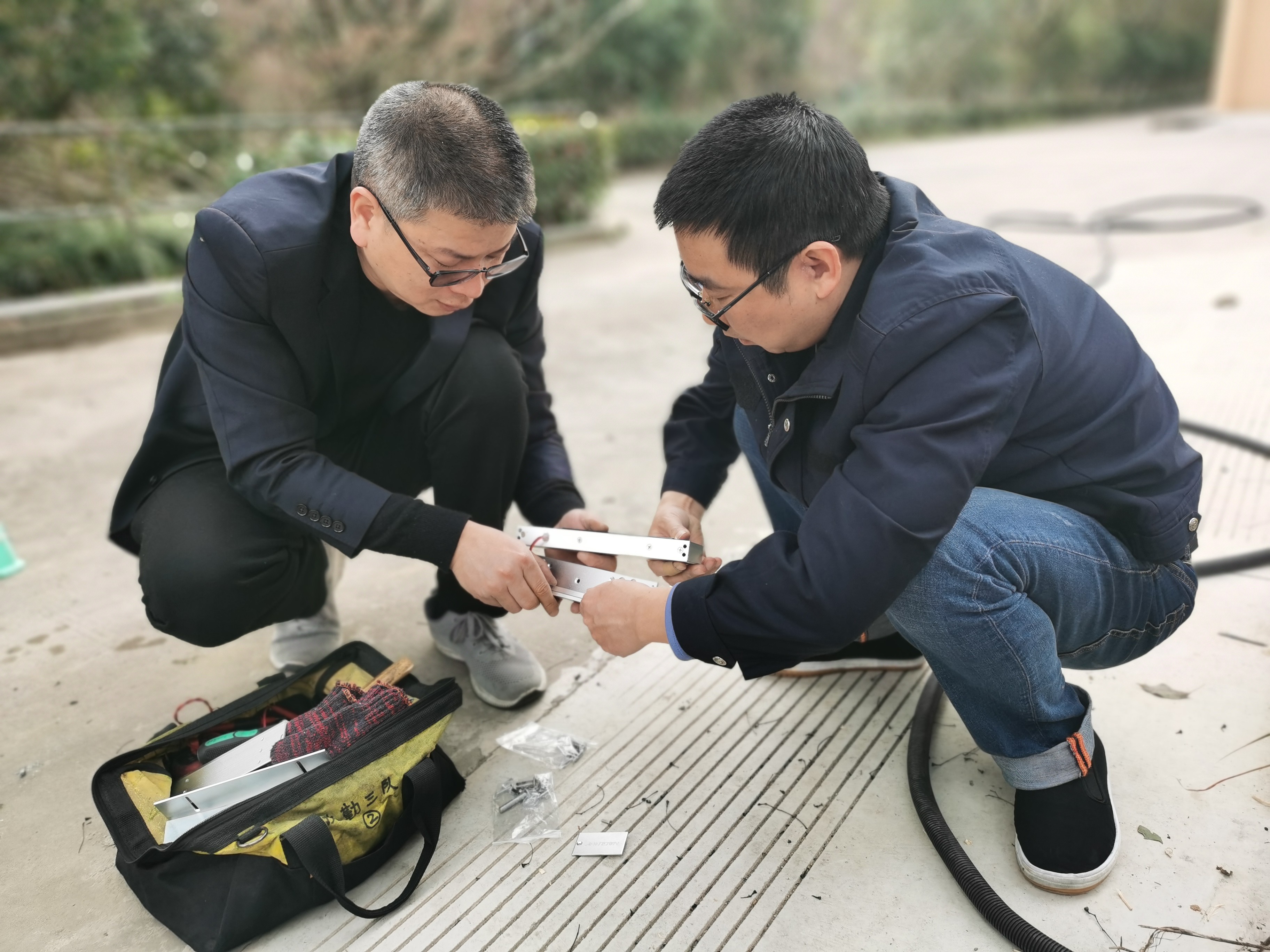 (圖為金衛(wèi)軍與隊員動手安裝)