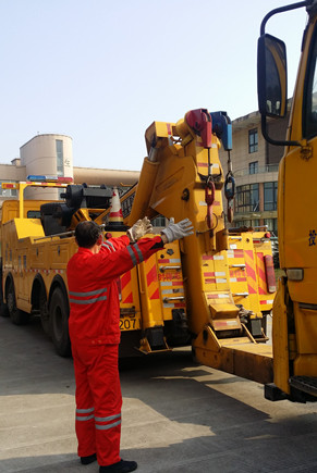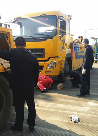 圖為演練現(xiàn)場 廣場上,當(dāng)指揮員下達(dá)“拖車兩次增高作業(yè)演練開始”口令后,拖車在輔助工的引導(dǎo)下,駕駛員將拖車緩緩地倒到故障車的前面,停穩(wěn)后,輔助工立馬從工具箱里拿出托叉、方木等附件,將托叉插入托叉座,調(diào)整好位置,駕駛員操縱操作手柄進(jìn)行第一次托舉鋼板作業(yè)。當(dāng)抬高一定高度后,輔助工將方木填在前輪胎下面,然后放下托臂,重新調(diào)整好位置,進(jìn)行第二次托舉工字梁作業(yè),直到達(dá)到安全高度,輔助工才抽出方木,駕駛員迅速將故障車拖離現(xiàn)場。兩次增高作業(yè)順利完成,演練達(dá)到了預(yù)期效果。 演練現(xiàn)場,氣氛熱烈,員工們針對(duì)復(fù)雜車型和去年拖車過程中發(fā)生的事故案例,相互探討,并紛紛表示在今后的工作過程中,要根據(jù)車型的實(shí)際情況,掌握各種作業(yè)技巧,同時(shí)要吸取事故教訓(xùn),增強(qiáng)安全意識(shí),確保作業(yè)安全。 何先林