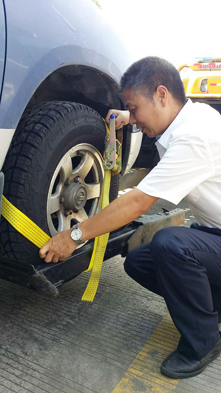 上圖為輪胎捆綁演練現(xiàn)場 綁帶雖小,卻是安全拖曳環(huán)節(jié)上的重要一環(huán),一旦捆綁不牢,車輛滑落,極易造成安全事故。施救中心抽一切可利用時間,抓一切安全隱患細節(jié),讓每一個在崗員工進行了輪胎捆綁練習(xí),力求每一個員工準(zhǔn)確掌握各種綁帶使用技能,特別是三種標(biāo)準(zhǔn)的輪胎捆綁方式,更是要求他們熟練掌握,并應(yīng)用到實際工作中,嚴(yán)禁不綁、隨便綁、胡亂綁。 本次演練距離6月23日聯(lián)合演練已經(jīng)過去了兩個月時間,施救中心領(lǐng)導(dǎo)高度重視當(dāng)時高速交警與公司領(lǐng)導(dǎo)的總結(jié)點評,積極制定措施,從每一個細節(jié)抓起,針對演練過程中的規(guī)范操作、安全措施、施救效率以及文明服務(wù)各個方面的不足之處,展開一系列的規(guī)范和整改措施。 后續(xù),該中心還將在其他施救環(huán)節(jié)對員工進行各項專業(yè)技能訓(xùn)練,提高員工的業(yè)務(wù)水平和工作能力。 王凱