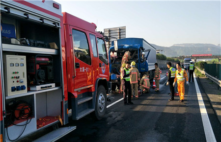 控制好現(xiàn)場(chǎng)以后,消防人員利用擴(kuò)張器展開(kāi)救援,但是成效并不明顯。7點(diǎn)左右,救護(hù)車已然到達(dá)現(xiàn)場(chǎng),但是駕駛員依舊卡在車中。為保障駕駛員生命安全,消防人員并未進(jìn)行強(qiáng)行拆除,而是召喚了一輛帶有氣泵設(shè)備的專業(yè)消防車趕往現(xiàn)場(chǎng),利用氣泵剪進(jìn)行破拆,經(jīng)過(guò)眾人的努力,終于將臉上鮮血直流的駕駛員成功救出,并送上救護(hù)車。7點(diǎn)30分,救護(hù)車與消防人員撤離現(xiàn)場(chǎng),施救中心人員進(jìn)行善后工作,并將事故車輛拖離現(xiàn)場(chǎng)。8時(shí)許,高速恢復(fù)通行。