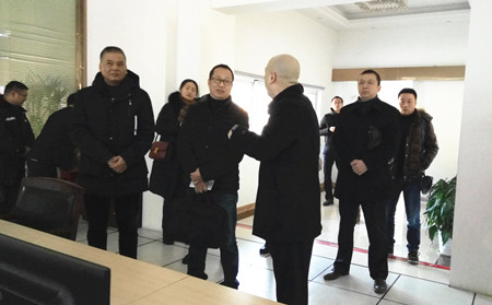 圖為集團副總經(jīng)理章海峰帶領(lǐng)考察組參觀上墻黨建文化