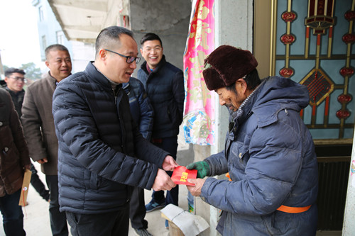 圖為集團(tuán)副總經(jīng)理羅小將慰問(wèn)村里困難群眾