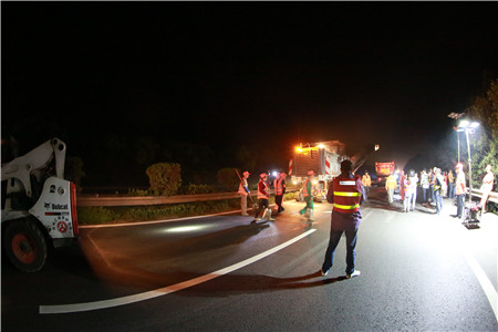 反復(fù)溝通,施工保質(zhì)保進(jìn)度。要在車流量極大的主干線上夜間順利施工,不僅對(duì)工程質(zhì)量、進(jìn)度負(fù)責(zé),更要對(duì)安全保暢負(fù)責(zé),不能有半點(diǎn)疏忽,不允許絲毫麻痹,而且涉及面極廣。不僅涉及工程部與施工監(jiān)理單位,更涉及到高速交警、路政及運(yùn)營管理等多個(gè)部門,前期工程部協(xié)交警、營運(yùn)部、監(jiān)理、施工等各相關(guān)單位就施工方案反復(fù)論證,一次次的討論與交流,計(jì)劃改了又改,從提前發(fā)布公告到路口設(shè)立標(biāo)志,從預(yù)警車輛安排到分流時(shí)間節(jié)點(diǎn),從搶險(xiǎn)預(yù)案到應(yīng)急小分隊(duì)建立,路面的反復(fù)測量,綠化養(yǎng)護(hù)的同期推進(jìn).....千頭萬緒,在于每一個(gè)細(xì)節(jié)的反復(fù)論證。一直到11號(hào)下午,確定了最合理有效的交通組織方案,施工前的安全和技術(shù)方面有了最后的交底,器械設(shè)備、材料、人員班組配備等一一清點(diǎn)得到最終確認(rèn)。