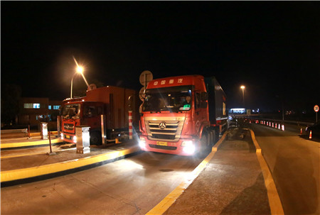 臺(tái)州南、溫嶺西收費(fèi)所,分流9點(diǎn)開始,由于夜間通行貨車居多,每輛需計(jì)重收費(fèi),且夾雜綠農(nóng)車,情況復(fù)雜,分流1個(gè)小時(shí)后出口車道已排成車燈長龍,壓力巨大?!奥房趨f(xié)警一定要守住第一道防線,不能讓任何車輛進(jìn)入!”富有經(jīng)驗(yàn)的所長王益民已在車道上與交通協(xié)管員一起指揮疏導(dǎo)交通了。從晚上10點(diǎn)到凌晨6點(diǎn),持續(xù)奮戰(zhàn)8個(gè)小時(shí),在有限的具有稱重能力車道的情況下,臺(tái)州南、溫嶺西共完成了5千多輛車的收費(fèi)工作,流量相比平時(shí)增加一倍。