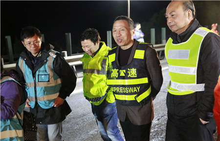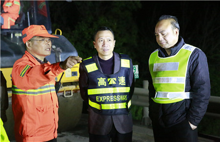 圖為集團總經(jīng)理張建平夜訪養(yǎng)護施工一線