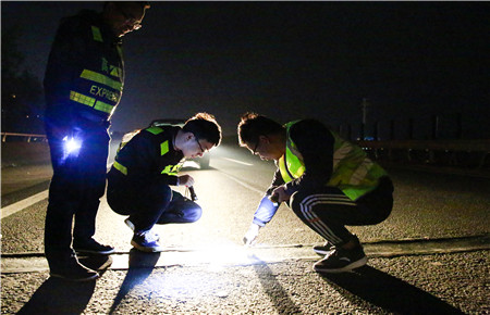 “橋梁伸縮縫修理小組,錐形標(biāo)志擺放長(zhǎng)度不足,施工點(diǎn)燈光不足,尤其下半夜運(yùn)料車駕駛員疲勞,極有可能闖入施工區(qū),請(qǐng)施工監(jiān)理單位嚴(yán)加管控,確保安全。”23日凌晨2點(diǎn),工程部對(duì)施工、監(jiān)理單位發(fā)出指令。施工期間經(jīng)常都會(huì)有類似于此的細(xì)節(jié)命令不斷提出。工程部連帶負(fù)責(zé)人共有7名專業(yè)技術(shù)人員,每晚緊盯施工現(xiàn)場(chǎng)指導(dǎo)監(jiān)督施工,嚴(yán)格把控好安全關(guān)、質(zhì)量關(guān),全過程嚴(yán)格管理。第二天仍然堅(jiān)持辦公處理日常事務(wù),下午定時(shí)召開工地現(xiàn)埸碰頭會(huì)協(xié)調(diào)會(huì)解決相關(guān)問題,爭(zhēng)分壓秒搶施工進(jìn)度。壓力即是動(dòng)力,戰(zhàn)斗在一線的工程人員始終用堅(jiān)定的信念,秉著改善路況迎接國檢的強(qiáng)大決心,發(fā)揮攻堅(jiān)不畏難的精神,再次以實(shí)際行動(dòng)生動(dòng)詮釋了高速鐵軍的內(nèi)涵。