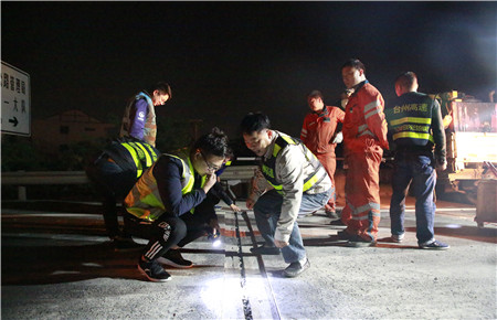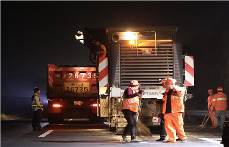 確定日期時(shí)間。施工前夕工程部負(fù)責(zé)人反復(fù)與交警、路政等部門溝通協(xié)調(diào),渠道暢通,最終達(dá)成一致意見,為盡量避免給公眾出行帶來影響,施工基本采用夜間斷流封道方式進(jìn)行。施工過程中與高速交警、路政配合默契,封道都在規(guī)定時(shí)間內(nèi)開始結(jié)束,盡所能減輕施工對(duì)高速營運(yùn)影響,保證路段通行能力。