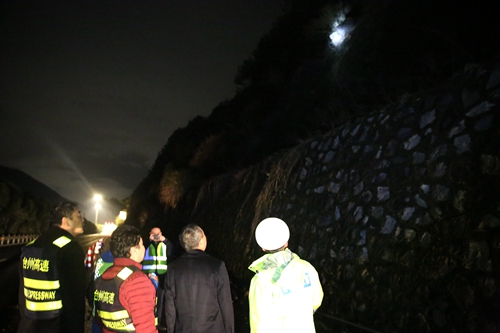 張建平與高速交警、施工單位等相關(guān)人員仔細(xì)勘踏險(xiǎn)情現(xiàn)場(chǎng),連夜會(huì)商制定解決高邊坡落石臺(tái)上的巨石方案。由于深夜天黑,高邊坡坡度較高,沒(méi)有直接供人上坡的道路,夜間施工存在較大困難且易造成人身危險(xiǎn),只能安排人員緊盯現(xiàn)場(chǎng)通宵觀察情況,隨時(shí)匯報(bào)險(xiǎn)情進(jìn)展,等天一亮立即清理二級(jí)平臺(tái)上的大落石。張建平特別叮囑相關(guān)部門(mén)負(fù)責(zé)人,近期雨水還將持續(xù)一段時(shí)間,容易造成塌方等自然災(zāi)害的發(fā)生,一定要組織人員再次對(duì)高速全線高邊坡開(kāi)展隱患大排查。