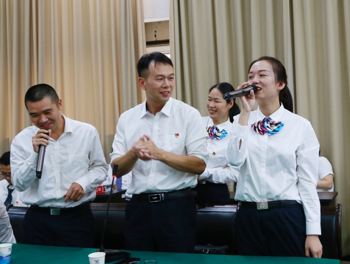 “我和我的祖國,一刻也不能分割......”搶答環(huán)節(jié)中,回答錯(cuò)誤的支部齊齊起立,表演了一段經(jīng)典紅歌。在輕松的氛圍中走進(jìn)黨章黨規(guī)、十九大精神知識(shí),深入學(xué)習(xí)習(xí)近平新時(shí)代中國特色社會(huì)主義思想,既有“意義”又有“意思”,既有“氛圍”又有“格調(diào)”。