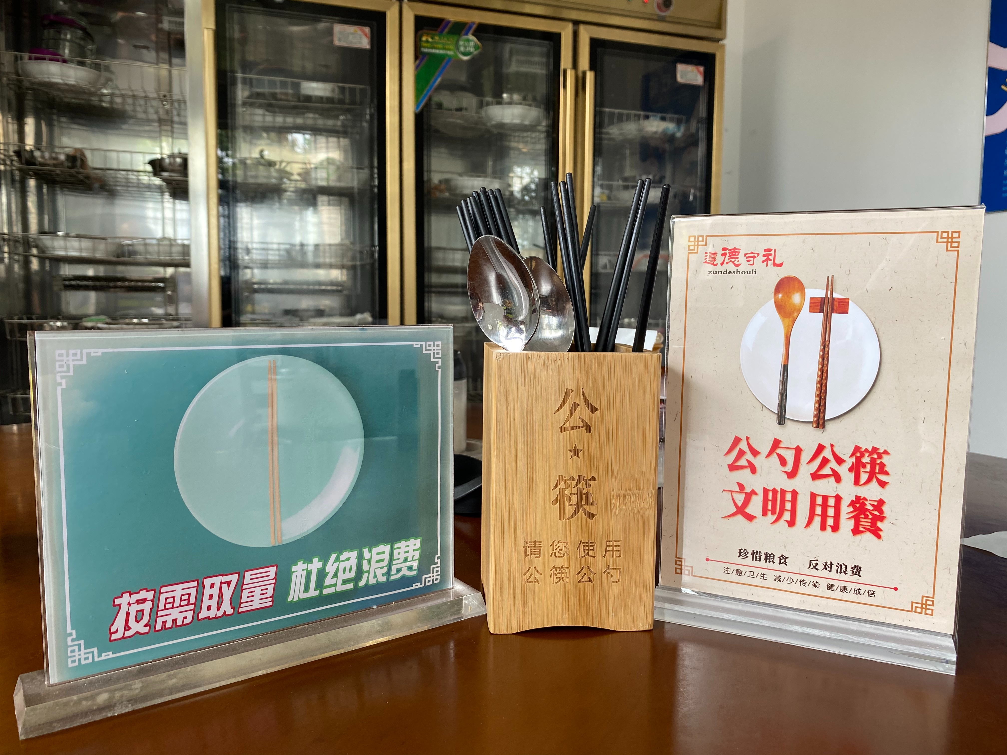 該所通過食堂粘貼宣傳畫、餐桌放置宣傳標(biāo)牌、設(shè)置公用筷子筒等多種方式進(jìn)行廣泛宣傳,以此提升“反對浪費(fèi)、公筷公勺、文明健康”的活動知曉率,促進(jìn)全體員工積極參與,引導(dǎo)員工自覺杜絕“舌尖上的浪費(fèi)”。