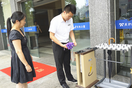 圖為物業(yè)公司工作人員幫助來(lái)客折傘 為提高物業(yè)管理質(zhì)量,營(yíng)造安全、舒心的大樓環(huán)境,前段時(shí)間,辦公室根據(jù)大樓實(shí)際情況和業(yè)主需求,精心制定更換物業(yè)方案,擴(kuò)大選擇物業(yè)公司至全省范圍,深入調(diào)查了解有選擇意向的物業(yè)公司,并通過(guò)現(xiàn)場(chǎng)考察以及經(jīng)由天和大廈業(yè)委會(huì)開(kāi)會(huì)決定,最終敲定浙師大印象物業(yè)管理有限公司負(fù)責(zé)本大樓物業(yè)管理。 5月1日,該物業(yè)公司正式入駐大樓,開(kāi)啟了新物業(yè)管理改革風(fēng)潮,在服務(wù)質(zhì)量、人員形象、崗位職責(zé)、保潔等方面進(jìn)行了全面整改。對(duì)比原先的物業(yè)公司,他們不僅增加人員配置,還提高上崗人員形象、素質(zhì)要求,整體改善大樓一些臟、亂的環(huán)境,設(shè)立服務(wù)中心前臺(tái)、統(tǒng)一規(guī)范業(yè)主廣告位、在大廳放置沙發(fā)以接待訪客等,尤其在大樓正門(mén)入口一側(cè)設(shè)立形象崗,同時(shí)根據(jù)大樓用戶需要,分別在大樓A、B幢放置快遞柜,方便用戶取用物品。為了大樓安全,該物業(yè)公司還摸底各樓層工作人員名單、聯(lián)系方式、具體辦公地點(diǎn),以防陌生人員無(wú)故闖入大樓。 據(jù)該物業(yè)公司副總經(jīng)理霍正佩介紹,其公司要求形象崗上的工作人員要規(guī)范使用迎賓用語(yǔ),同時(shí)服務(wù)中心前臺(tái)客服人員上班時(shí)間延長(zhǎng)至晚8點(diǎn),以更好地滿足部分業(yè)主需求。 在此期間,公司辦公室一直持續(xù)跟進(jìn)物業(yè)交接、整改工作,共同完善物業(yè)管理,創(chuàng)造大樓新形象。在新物業(yè)入駐第二天,公司安保部便對(duì)安全生產(chǎn)工作情況進(jìn)行了全面檢查,并提出整改建議。 陳林偉