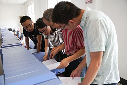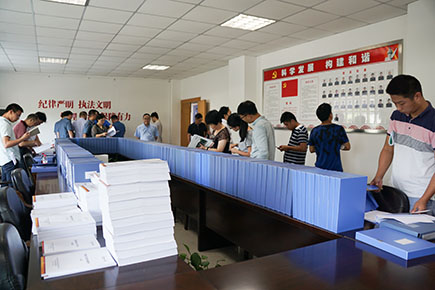 圖為省公路局檢查組檢查內(nèi)頁資料現(xiàn)場(chǎng)