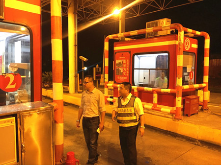 公司副總經(jīng)理章海峰深夜到臺(tái)州南收費(fèi)所檢查