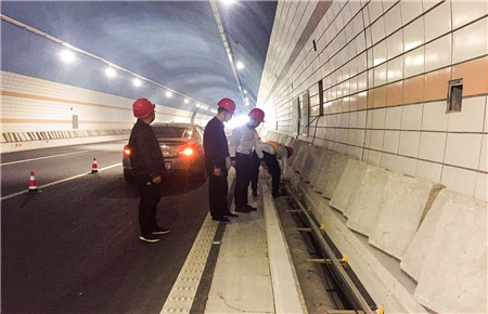 圖為市政公司與安保部聯(lián)合檢查2號隧道機電監(jiān)控工程現(xiàn)場