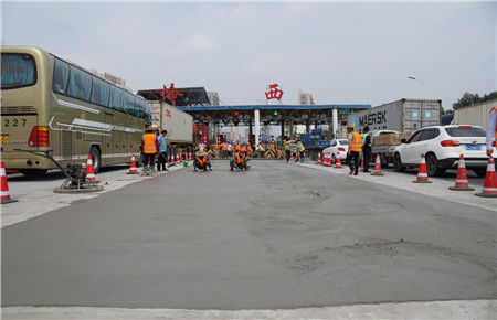 近日,隨著混凝土養(yǎng)護(hù)的結(jié)束,溫嶺西收費(fèi)站車(chē)道維修工程圓滿完工,收費(fèi)車(chē)道恢復(fù)正常通行。此次工程對(duì)溫嶺西收費(fèi)站第四、五車(chē)道進(jìn)行了徹底維修,包括挖除原車(chē)道破損路面、注漿、安放鋼筋網(wǎng)、澆筑混凝土、混凝土養(yǎng)護(hù)、標(biāo)線恢復(fù)等工序。