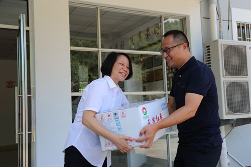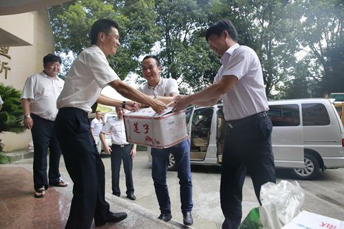 圖為集團(tuán)副總經(jīng)理陳保衛(wèi)、羅小將送清涼現(xiàn)場(chǎng)