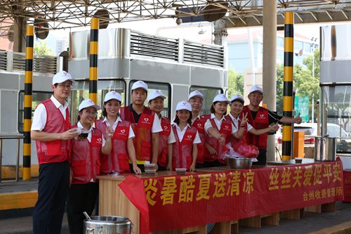 同日開始,臺(tái)州收費(fèi)所組織志愿者開展“炎暑酷夏送清涼,絲絲關(guān)愛(ài)促平安”為主題的送清涼活動(dòng),所內(nèi)黨員、入黨積極分子及業(yè)務(wù)骨干等20多名志愿者身著統(tǒng)一的志愿者服飾,在車道的安全島上拉起橫幅,搭起“便民服務(wù)臺(tái)”,免費(fèi)向過(guò)往人員送上防暑藥品和所里食堂自制的綠豆湯、青草糊等解暑飲品,喝在口中,甜在心里,司乘人員紛紛贊不絕口。