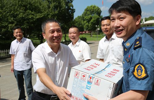 圖為集團(tuán)副總經(jīng)理章海峰送清涼現(xiàn)場(chǎng)