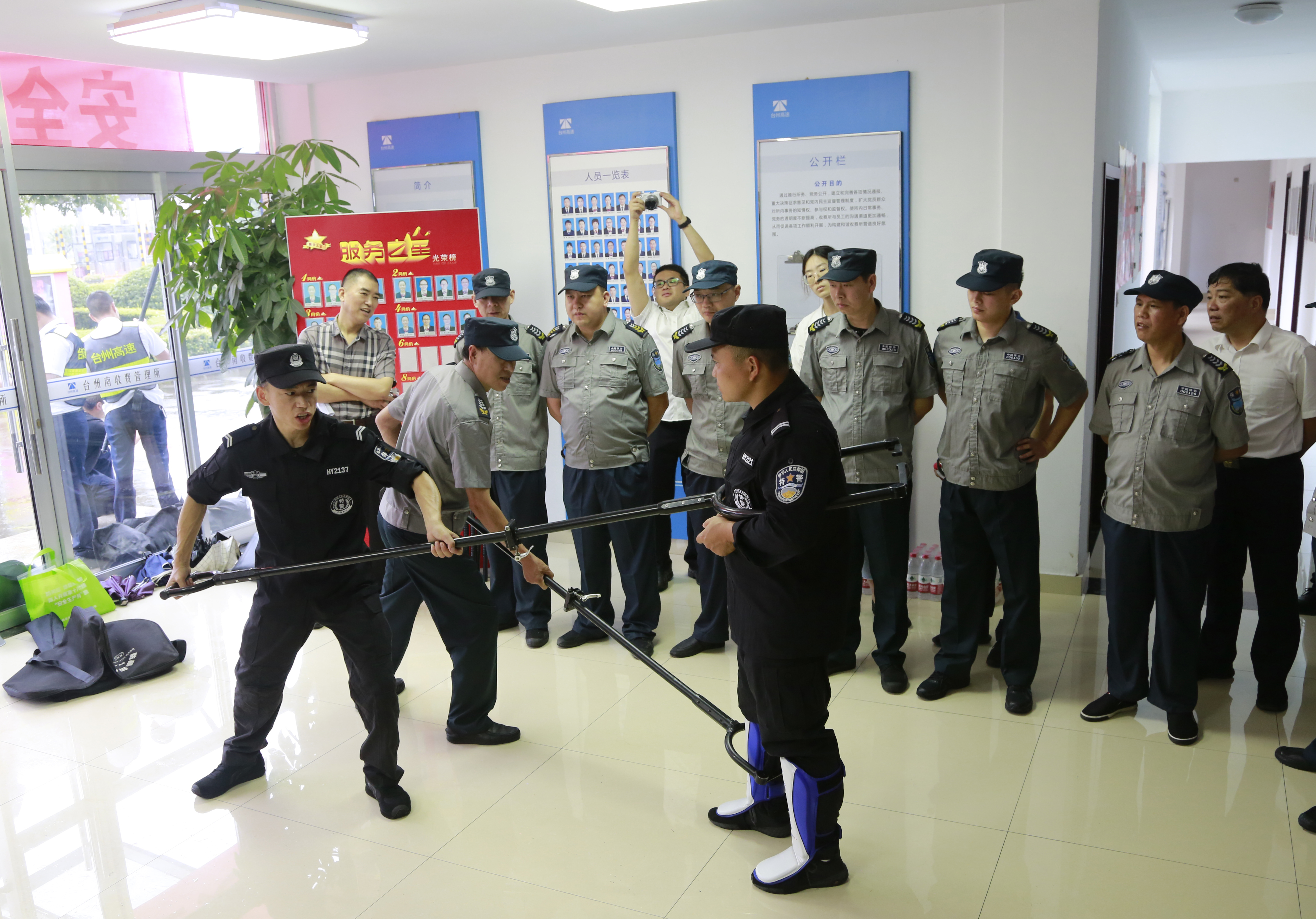 演練開始前,盧尚明對防爆盾牌、防爆鋼叉、抓捕器、警棍等各類防爆器材的功能和使用方法進(jìn)行一一講解,并示范操作,以及帶領(lǐng)大樓浙師大印象物業(yè)人員現(xiàn)場練習(xí)器械使用。